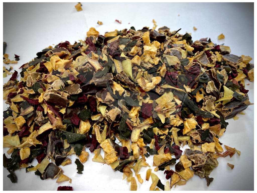 Vitamínová bomba vhodná na doplnenie minerálov, vitamínov, ako zdroj energie, zchutňovadlo a ako spestrenie kŕmnej dávky. Zmes jablkových kociek, červenej repy, chaluhy a karobu zaručuje vyváženú chuť, do zmesi môžeme ukryť ďalšie menej chutné doplnky alebo lieky. Karob reguluje trávenie a pH, znižuje riziko žalúdočných vredov, pre žriebätá je cenným zdrojom minerálnych látok, predovšetkým vápnika. Jablkové plátky sú zdrojom vitamínov a minerálov, neobsahujú škroby.